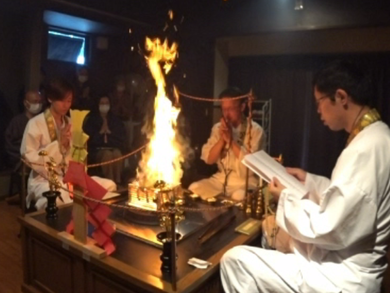 海命寺では毎月、先祖供養と祈願成就のため護摩焚きをしています